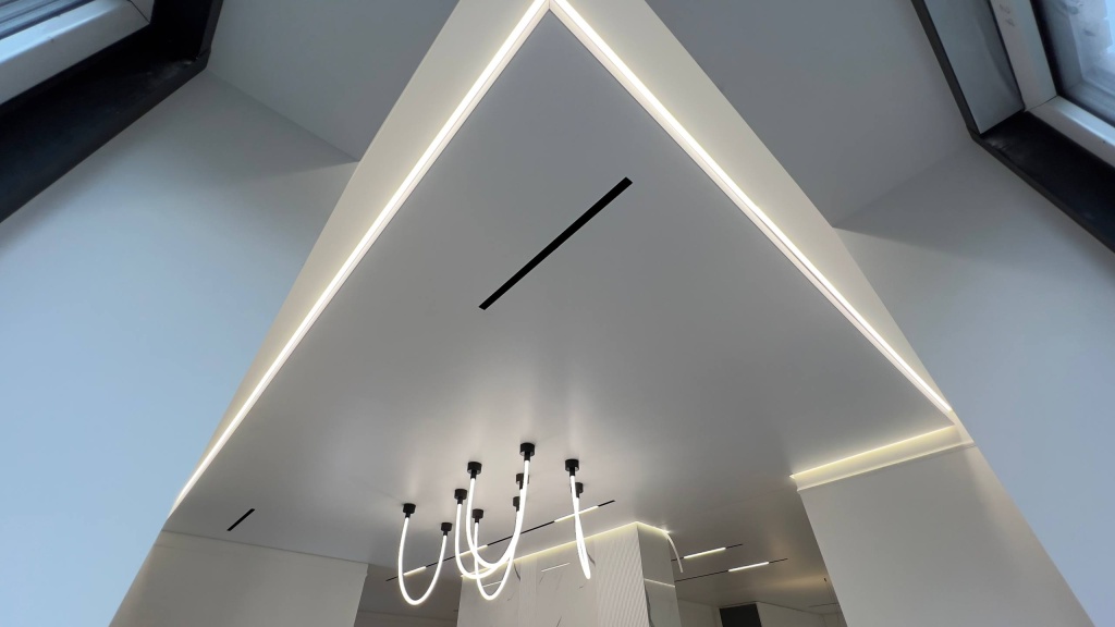 Матовый натяжной потолок с теневым примыканием.